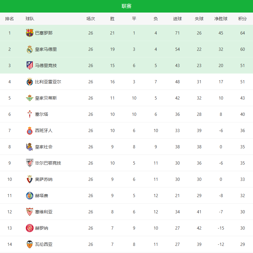 世界杯官方直播软件官网下载-随着皇马0-1爆冷+巴萨笑纳!西甲最新积分榜:1-4名差13分马竞掉队